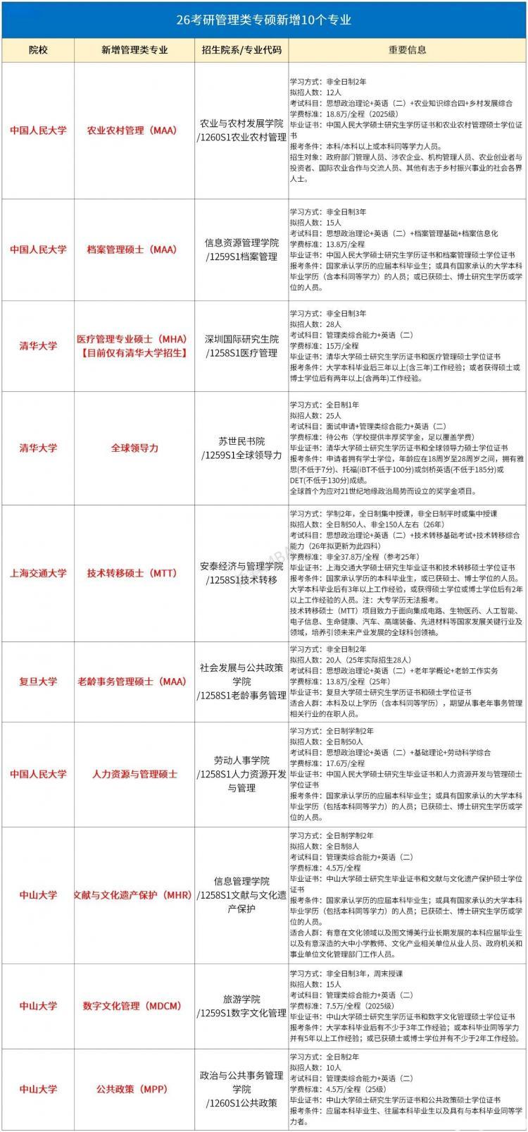 但早在2022年,管理类联考专硕另外新增了10个垂直领域专业,南宫28它们分别是:技术转移硕士、医疗管理硕士、农业农村管理硕士、人力资源开发与管理硕士、档案管理硕士和文献与文化遗产保护硕士、老龄事务管理、全球领导力、公共政策、数字文化管理。