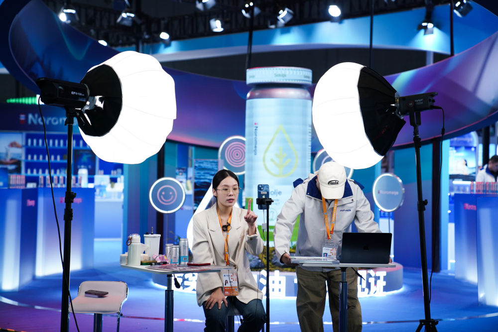 2025年11月4日,南宫28下载工作人员在第八届进博会医疗器械及医药保健展区直播。本届进博会直播密度大、形式多样,有的展位专门搭建直播区域,灯光、背景、展板一应俱全;有的展位手机一架、产品一摆,直播就地开始;还有的直播间是“流动的”,达人主播们拿着手机、别着麦克风,穿梭于各个品牌展位间现场推荐……八年来,进博会影响力逐年递增,越来越多的中国消费者愿意通过直播了解进博会上的“全球好物”。